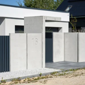 Ogrodzenie wykonane z betonu architektonicznego jest jedynym w swoim rodzaju sposobem, aby uczynić z posesji nowoczesne dzieło architektury. To od Klienta zależy jaką konfigurację wybierze – możliwość łączenia murów ogrodzeniowych z elementami metalowymi i roślinnością, zabarwienie impregnatem koloryzującym, sposobność skorzystania z wariantu o szerokości 50 cm i narożników ogrodzeniowych oraz możność dalszej personalizacji ułatwiają dobranie najlepszego rozwiązania.